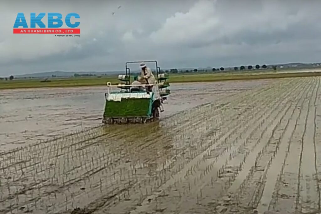 - Cấy máy: Sử dụng máy cấy đẩy tay hoặc máy cấy ngồi lái để cấy mạ xuống ruộng.